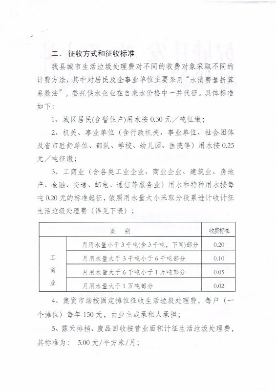 城市生活垃圾處理費(fèi)收費(fèi)標(biāo)準(zhǔn)